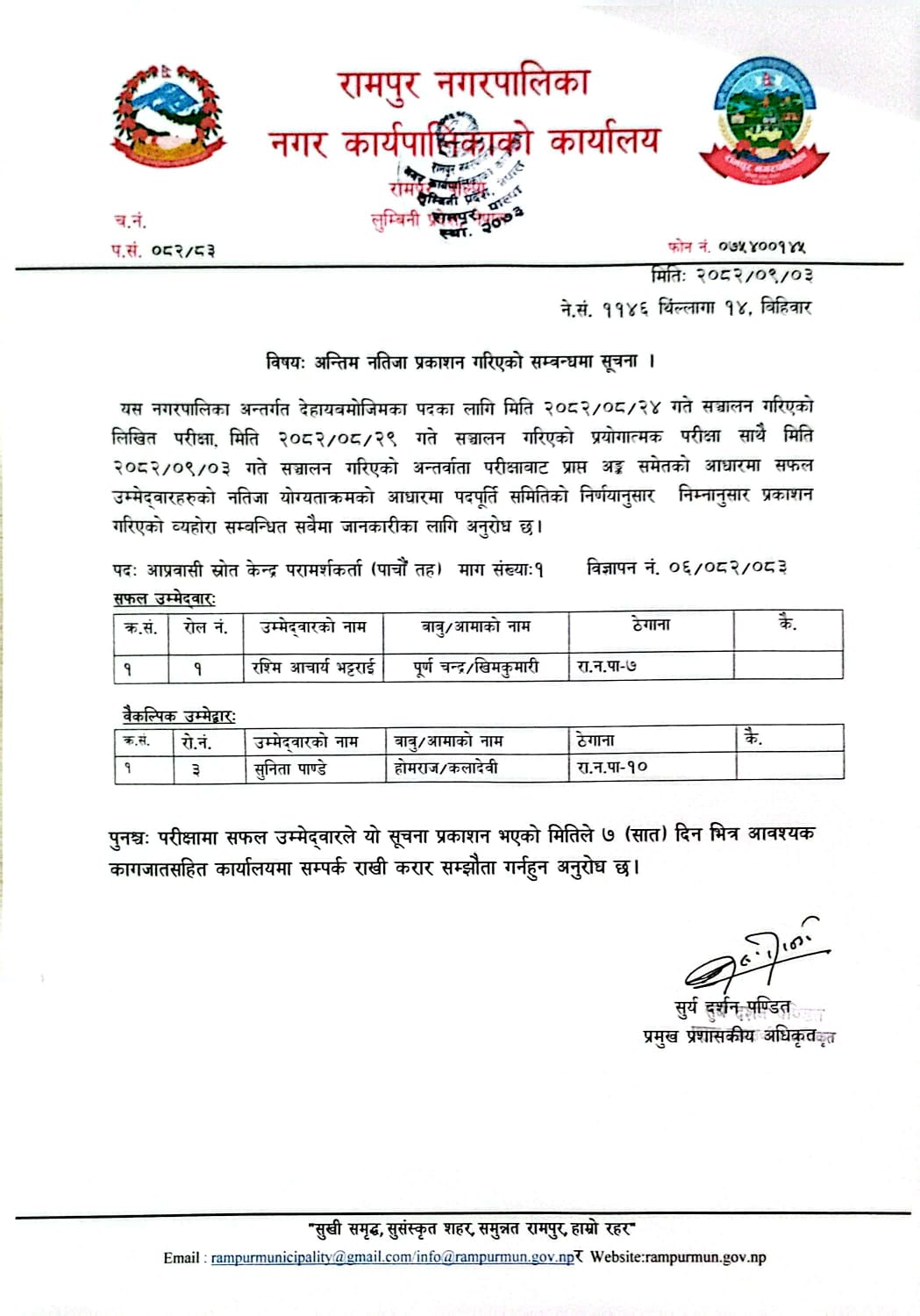 info@rampurmun.gov.np/rampurmunicipality@gmail.com