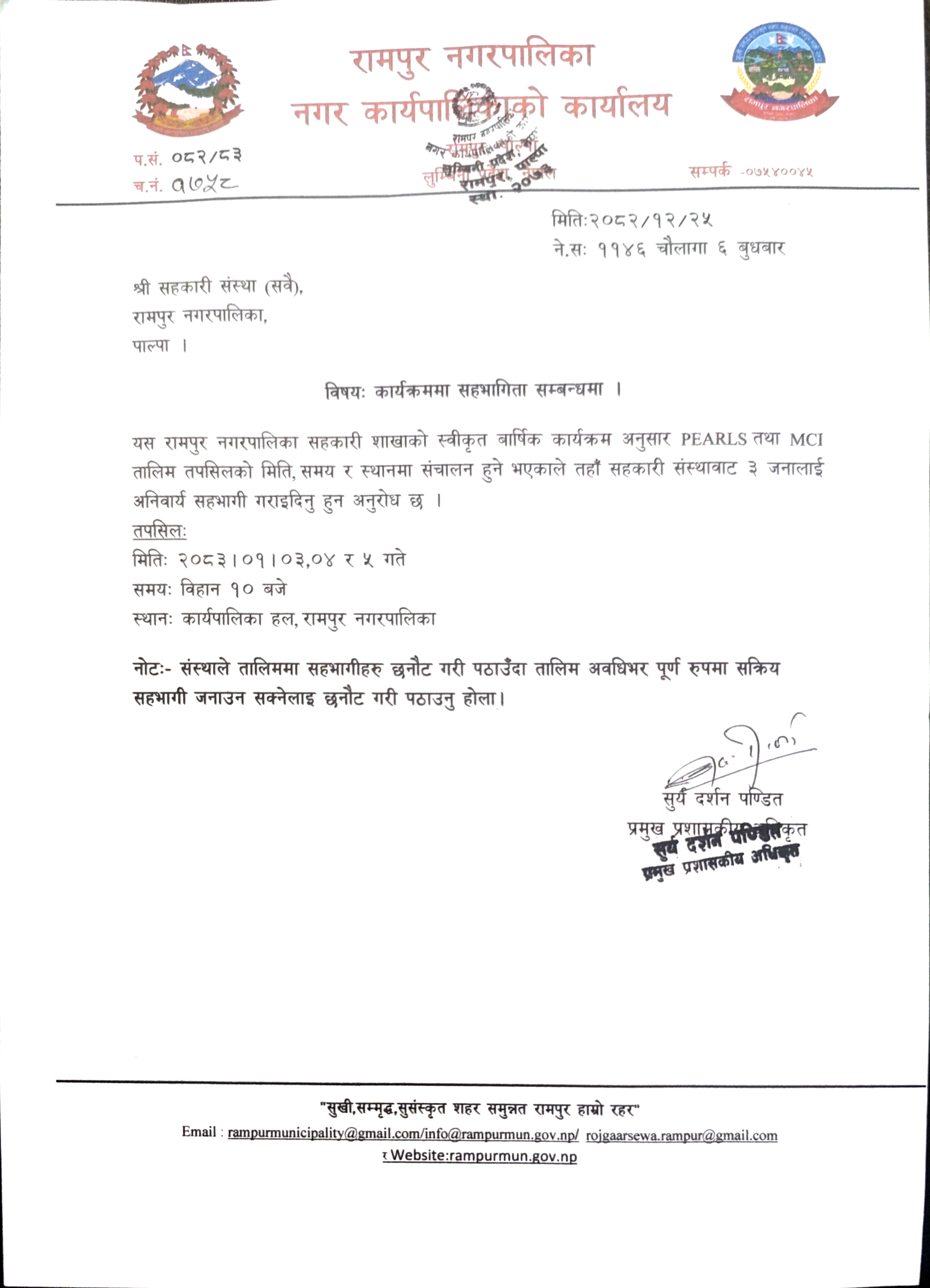 info@rampurmun.gov.np/rampurmunicipality@gmail.com