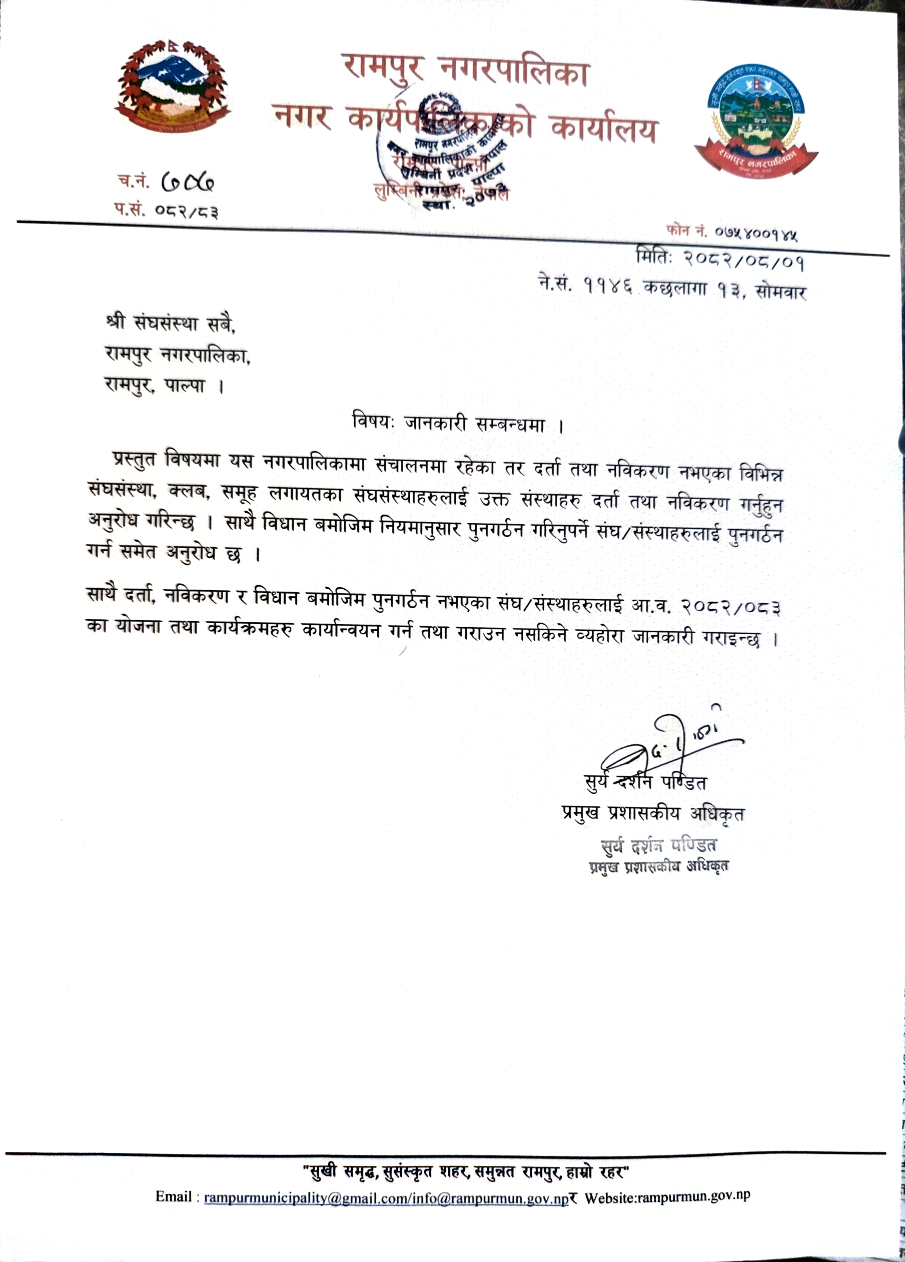 info@rampurmun.gov.np/rampurmunicipality@gmail.com