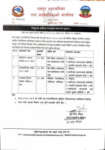 निशुल्क तालिम संचालन सम्बन्धी सूचना ।