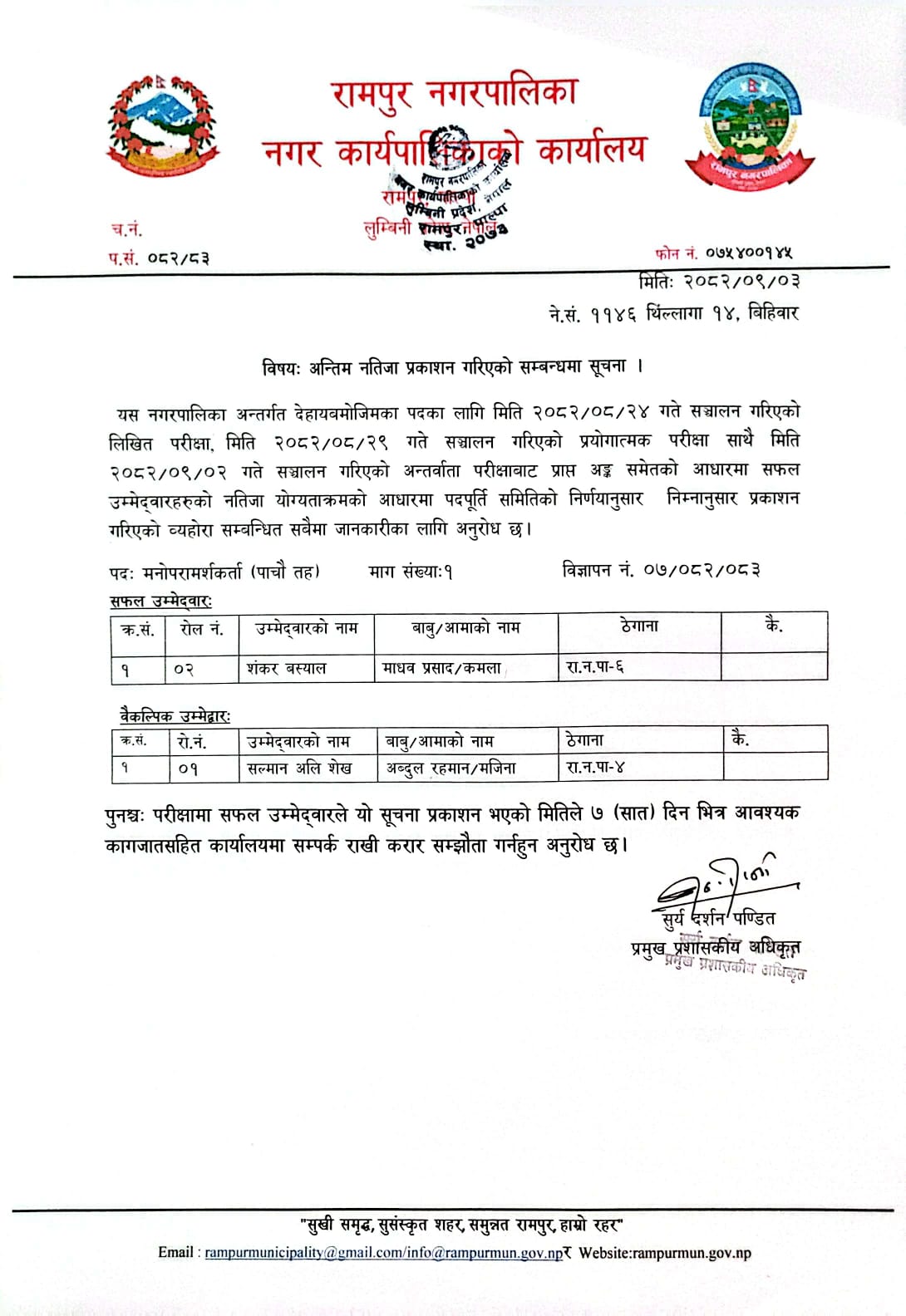 अन्तिम नतिजा प्रकशन गरिएको सम्बन्धी सूचना।।