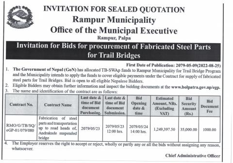 » झलुङ्गे पुल निर्माण सम्बन्धी रामपुर नगरपालिकाको सूचना।