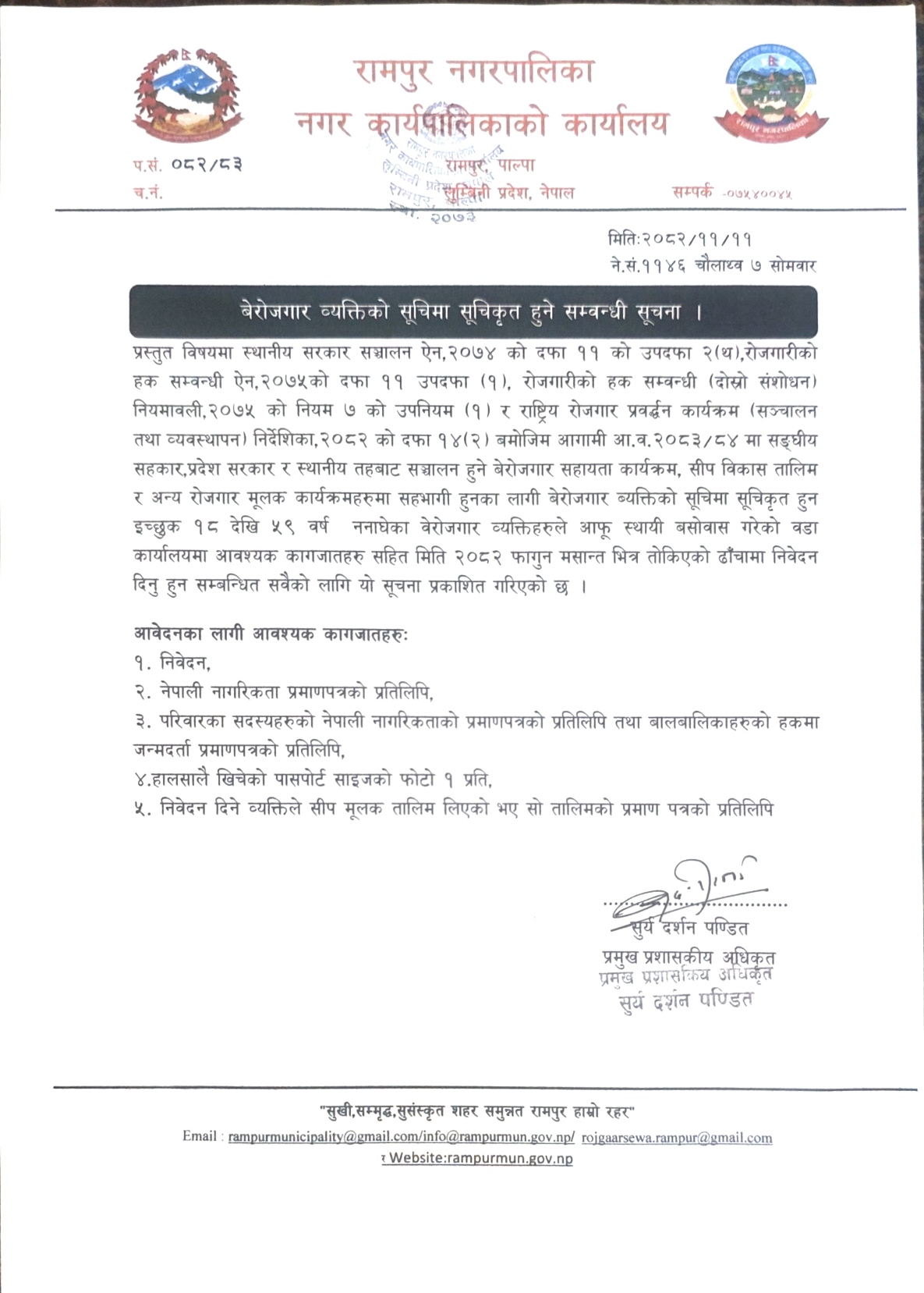 info@rampurmun.gov.np/rampurmunicipality@gmail.com