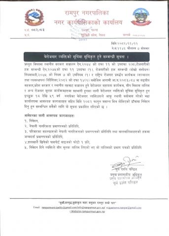 » बेरोजगार व्यक्तिको सूचिमा सूचिकृत हुने सम्बन्धी सूचना ।