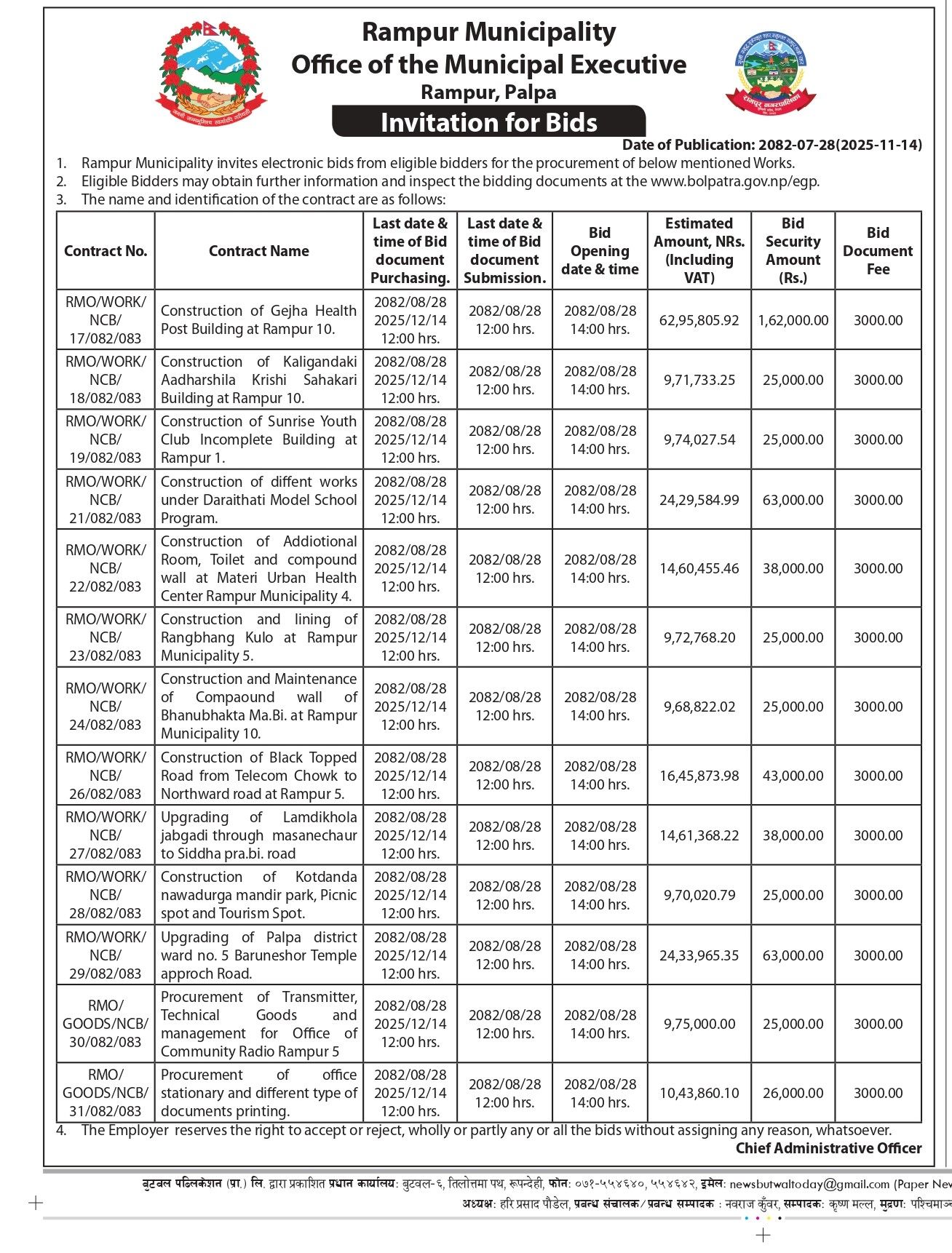 सार्वजनिक खरिद/बोलपत्र सूचना