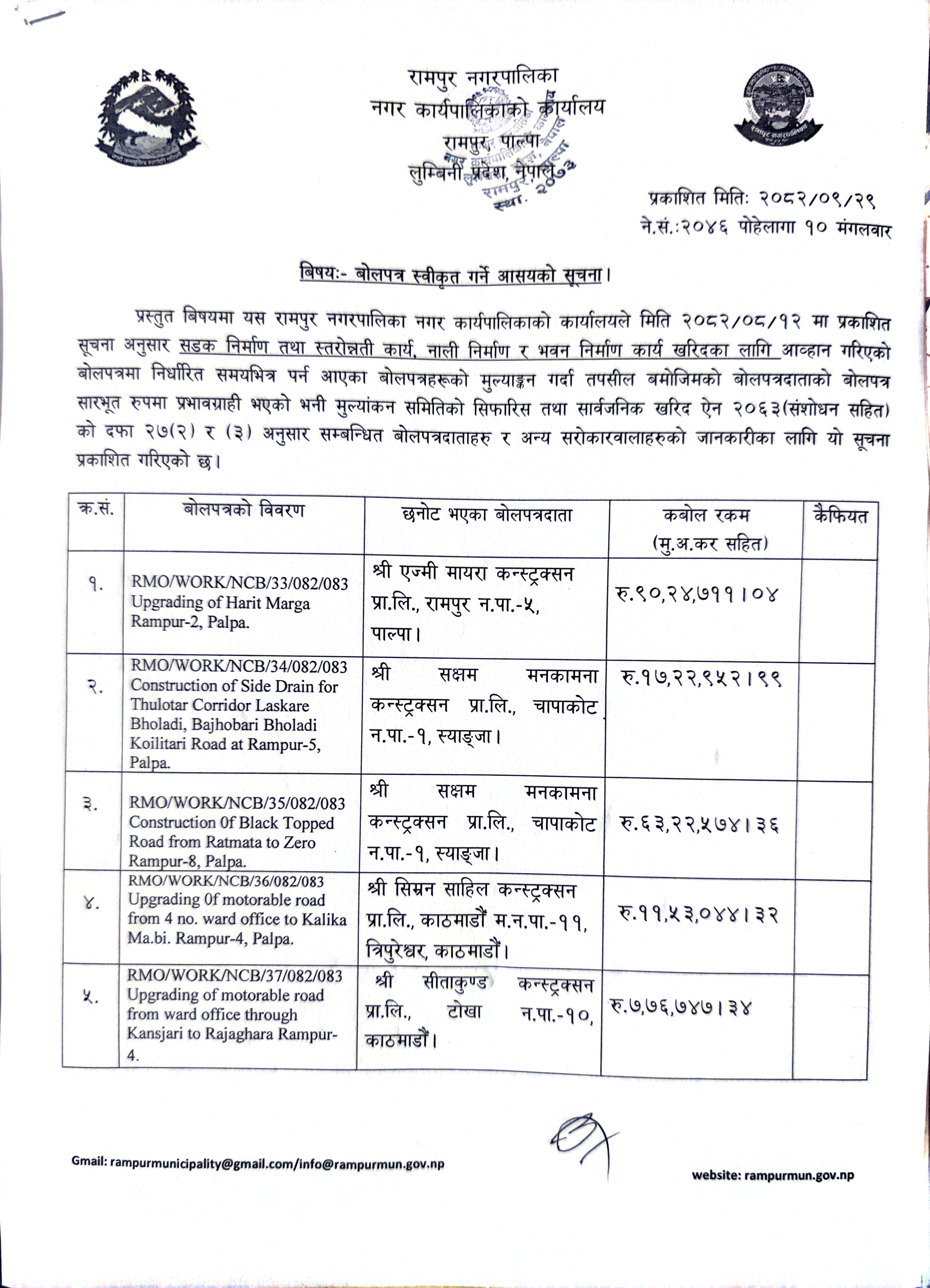 info@rampurmun.gov.np/rampurmunicipality@gmail.com
