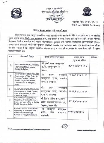 बोलपत्र / दरभाउपत्र स्वीकृत गर्ने आसयको सूचना ।।।