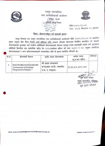 » बोलपत्र स्वीकृत गर्ने आसयको सूचना ।