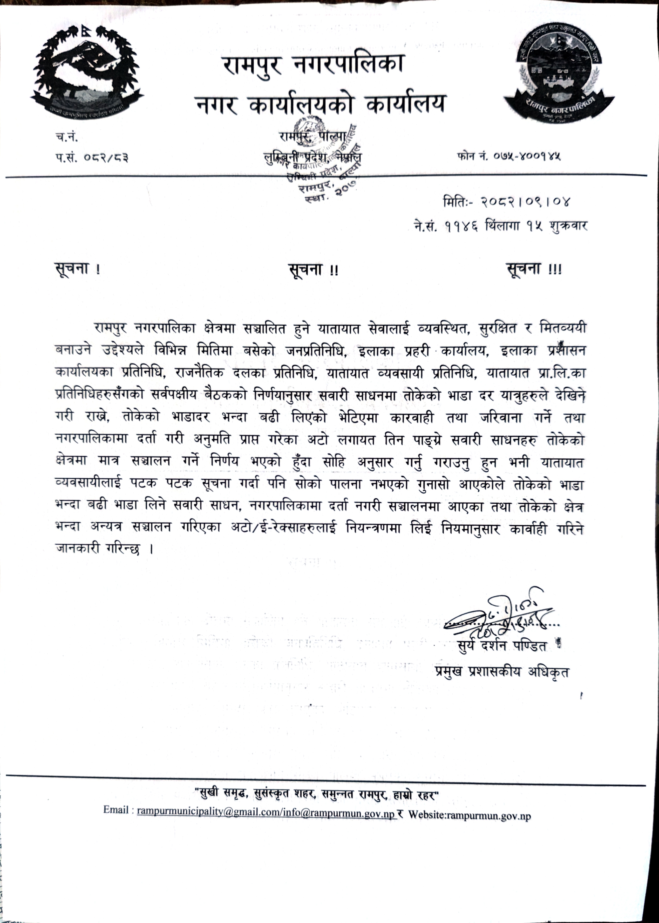 info@rampurmun.gov.np/rampurmunicipality@gmail.com