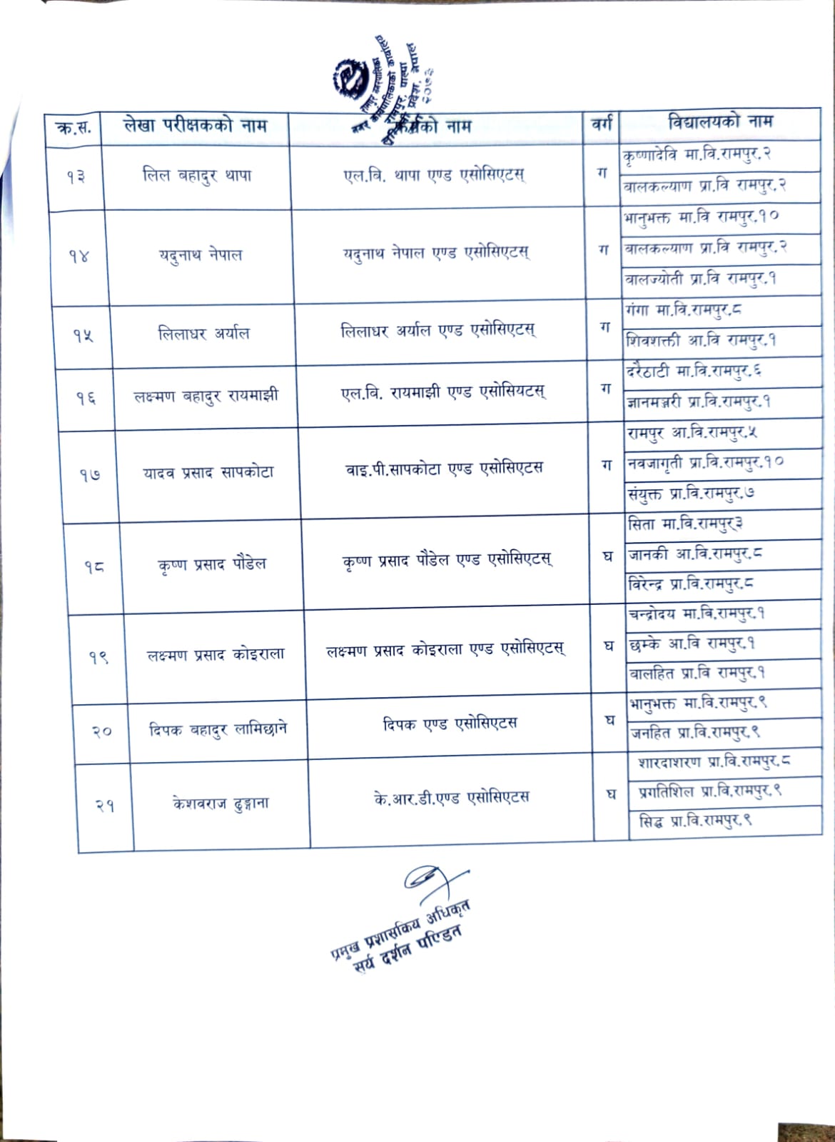 » सामुदायिक विद्यालयको लेखा परिक्षण गर्न लेखा परिक्षक नियुक्ति बुझ्ने सम्बन्धी सूचना ।